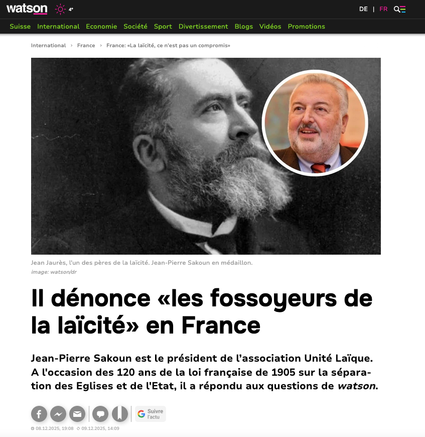 Jean-Pierre Sakoun est le président de l’association Unité Laïque. A l’occasion des 120 ans de la loi française de 1905 sur la séparation des Eglises et de l’Etat, il a répondu aux questions de watson.